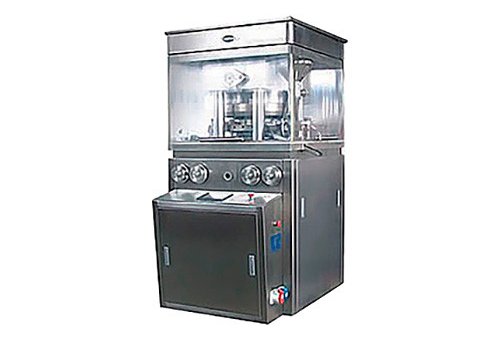 Автоматический роторный таблеточный пресс – это своего рода штампующий прибор для таблетки. Он способен прессовать таблетки различных форм и размеров, более того прессовать таблетки двух различных цветов и с отпечатанными буквами с двух сторон. В основном применяется в фармацевтических, химических, пищевых и электронных отраслях. Для производства двухцветных таблеток, необходимо лишь заменить компонент и добавить соответствующий порошок в загрузочную часть, что значительно упрощает технологию и снижает затраты.