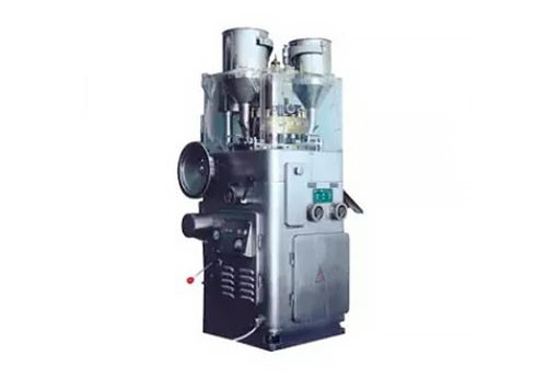 Данный роторный таблетпресс предназначен для производства таблеток из различных гранулированных материалов. Он может прессовать не только круглые таблетки, но и таблетки неправильной формы, двухслойные и кольцеобразные таблетки. На таблетки можно наносить тисненые буквы с обеих сторон. Матрица оснащается комплектом из 21-го подвижных пуансонов. Таким образом, за каждый оборот матрицы пресса выпускается 21 таблетка.