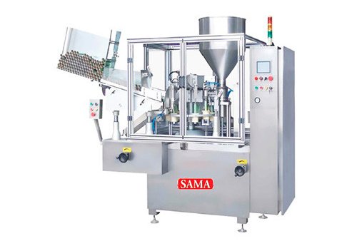 Эта машина наполняет и запаивает масло, мази, кремы и гели в пластиковые или алюминиевые (АЛЮ/АЛЮ) тубы. Скорость 1800-4200 туб/час, объем дозирования 50-300 мл (возможна индивидуализация), точность ±2%. Диаметр тюбика 10-50 мм, длина 80-250 мм (возможна индивидуализация). Мощность 2 кВт (380/220 В, 50 Гц), габариты 2620x1080x1980 мм, вес прибл. 1100 кг. Опционально: блок датировки. Подходит для фармацевтических и косметических производств.