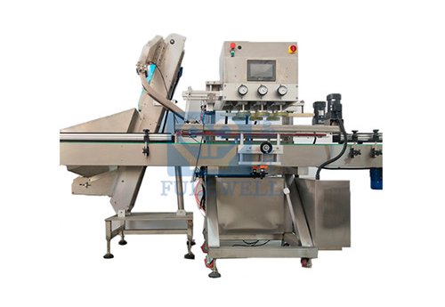 Adopts agile module combination, new ideal design, suitable for various bottle and cap rotating. No need to change parts, easily adjustable. Easy operation and convenient for maintenance. The machine has clutch to avoid the cap over-rotating. Capacity is 2000 – 4000 bottles per hour.