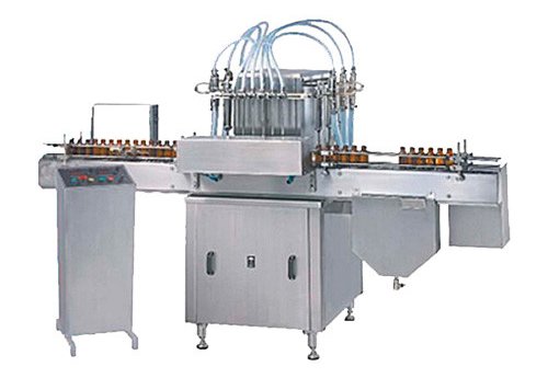 Working on volumetric principle, the unit is made compact, versatile and enclosed in stainless steel elegantly matt finish body. The semi-automatic volumetric liquid filling machine is precision built on sturdy welded frame completely enclose in stainless steel sheet and doors are provided to facilitate the servicing of machine. Output: 700 – 2,400 containers per hour. Filling volume: 5 – 1,000 ml.