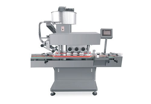 Equipped with three pairs of friction wheels, self-adjust tightness, helpful for the caps surface. Wide applicability, it is simple and convenient if change bottles and caps, just, adjust some components. Equipped PLC control system, parameters are set via HMI on the touchscreen.