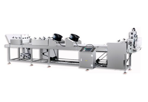 The production line is a fully automatic complete plant for Cereal bar, energy bars, nut bars, peanut candy bars, sesame candy bars and other cut and shaped foods. PLC controlled; parameters are set via HMI on a touchscreen. The material of the whole equipment is practical and the design is reasonable. The continuous operation of the cutter can reach 2000 pieces per minute, greatly improving the production efficiency.
