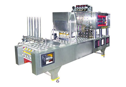 The automatic jelly cup filling and sealing machine is suitable for automatically filling and sealing plastic cup and box. Used for packing drink, yogurt, jelly, pudding, soya-milk, mineral water etc. Filling range is 0 – 350 ml.