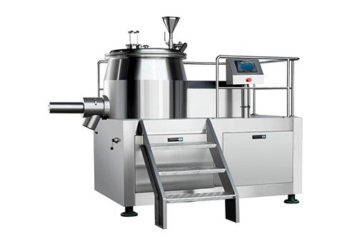 In the cylinder (conical) container, powder materials and binder will be mixed into moist soft materials by the mixed paddles at the bottom. Then they will be cut into uniform wet-particles by the side high-speed smashed paddles. It is the structure of horizontal cylinder (cone).