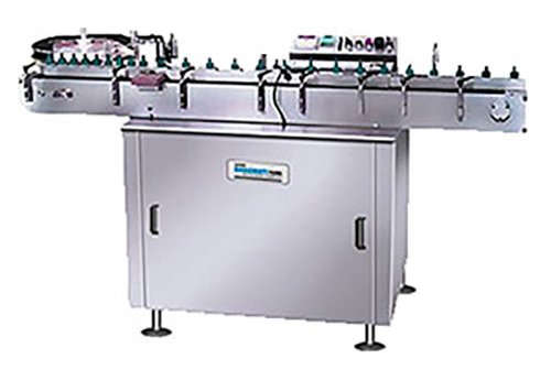 Fully automatic, User Friendly, Sticker (Self-Adhesive) Labelling Machine, suitable for Labelling on Round Vials, Bottles and other round objects. Machine incorporates latest sophisticated Microprocessor Controlled Stepper Motor Drive, Fiber Optic Label and Container sensing system. Output: 40 – 150 labels per minute. No change parts for container and label size.