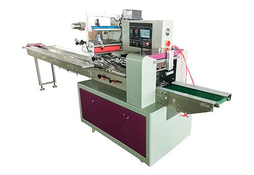 Horizontal flow packaging machine can pack different products,such as biscuit,bread,croissant,cake etc