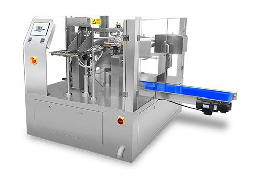 Our rotary packing machine works at a maximum speed of 60 pouches per minute. This automatic rotary pouch bagger is equipped with eight working positions, an electric touch screen (HMI) and PLC control system. Bagging Speed: 60 bags/min