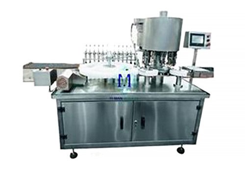 The Oral Liquid Filling Capping Machine (track filling) is used for filling and capping of small volume liquid. It automatically feeds, fills, cap sorts, and cap seals.