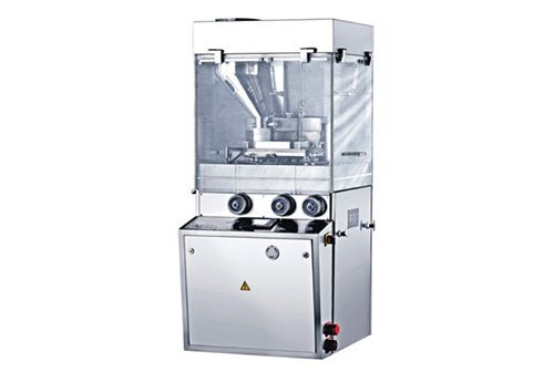 The machine is single side rotary tablet press machine which can press granular material into round shape tablets, irregular tablets or double-side engraved tablets. The machine is single side rotary tablet press machine which can press granular material into round shape tablets, irregular tablets or double-side engraved tablets. This machine is mainly used in pharmaceutical chemistry, foodstuff, electronic industries. It meets GMP requirements, machine design is reasonable, operation, dismantling and maintenance is convenient. PLC controlled; parameters are set via HMI on a touchscreen.